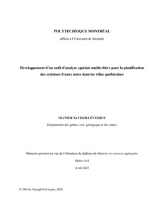 | Citer en APA 7: | Sayegh-Lévesque, O. (2025). Développement d'un outil d'analyse spatiale multicritère pour la planification des systèmes d'eaux usées dans les villes québécoises [Mémoire de maîtrise, Polytechnique Montréal]. PolyPublie. https://publications.polymtl.ca/65862/ |