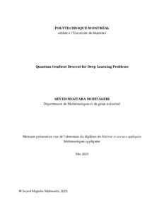 | Citer en APA 7: | Mohtasebi, S. M. (2025). Quantum Gradient Descent for Deep Learning Problems [Mémoire de maîtrise, Polytechnique Montréal]. PolyPublie. https://publications.polymtl.ca/65865/ |