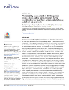 | Citer en APA 7: | Leveque, B., Shyaka, A. I., Ndong, M., Kammoun, R., Burnet, J.-B., Dorner, S., & Bichai, F. (2025). Vulnerability assessment of drinking water intakes to microbial contamination during combined sewer overflows under global change: A bottom-up approach. PLOS Water, 21 pages. https://doi.org/10.1371/journal.pwat.0000352 |