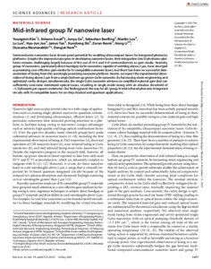 | Citer en APA 7: | Kim, Y., Assali, S., Ge, J., Koelling, S., Luo, M., Luo, L., Joo, H.-J., Zi Jing Tan, J., Shi, X., Ikonic, Z., Li, H., Moutanabbir, O., & Nam, D. (2025). Mid-infrared group IV nanowire laser. Science Advances, 11(20), eadt6723 (7 pages). https://doi.org/10.1126/sciadv.adt6723 |