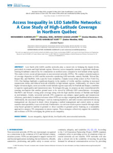 | Citer en APA 7: | Almekhlafi, M., Lesage-Landry, A., & Karabulut Kurt, G. (2025). Access Inequality in LEO Satellite Networks: A Case Study of High-Latitude Coverage in Northern Québec. IEEE Open Journal of Vehicular Technology, 6, 1613-1630. https://doi.org/10.1109/ojvt.2025.3575546 |