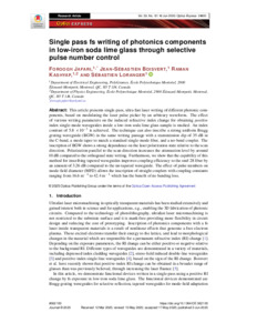 | Citer en APA 7: | Jafari, F., Boisvert, J.-S., Kashyap, R., & Loranger, S. (2025). Single pass fs writing of photonics components in low-iron soda lime glass through selective pulse number control. Optics Express, 33(12), 24800-24812. https://doi.org/10.1364/oe.562100 |