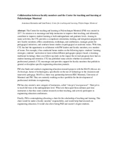 | Citer en APA 7: | Kozanitis, A., & Forest, L. (juin 2013). Collaboration between faculty members and the Center for teaching and learning at Polytechnique Montreal [Résumé]. Canadian Engineering Education Association Conference (CEEA 2013), Montréal, Québec (1 page). https://doi.org/10.24908/pceea.v0i0.4904 |