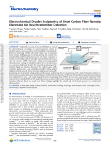 | Citer en APA 7: | Wang, Y., Gupta, P., Pradhan, A., Trouillon, R., Hanrieder, J., Zetterberg, H., & Cans, A.-S. (2025). Electrochemical droplet sculpturing of short carbon fiber nanotip electrodes for neurotransmitter detection. ACS Electrochemistry, 1(9), 1698-1709. https://doi.org/10.1021/acselectrochem.5c00135 |