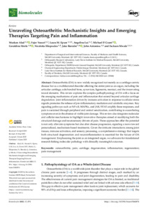 | Citer en APA 7: | Alad, M., Yousef, F., Epure, L. M., Lui, A., Grant, M. P., Merle, G., Eliopoulos, N., Barralet, J., Antoniou, J., & Mwale, F. (2025). Unraveling osteoarthritis: mechanistic insights and emerging therapies targeting pain and inflammation. Biomolecules, 15(6), 874 (26 pages). https://doi.org/10.3390/biom15060874 |