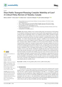 | Citer en APA 7: | Smith, R., Jain, P., Grisé, E., Boisjoly, G., & Ravensbergen, L. (2025). Does public transport planning consider mobility of care? A critical policy review of Toronto, Canada. Sustainability, 17(12), 5466 (16 pages). https://doi.org/10.3390/su17125466 |