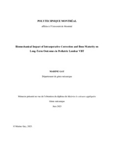 | Citer en APA 7: | Gay, M. (2025). Biomechanical Impact of Intraoperative Correction and Bone Maturity on Long-Term Outcomes in Pediatric Lumbar VBT [Mémoire de maîtrise, Polytechnique Montréal]. PolyPublie. https://publications.polymtl.ca/66249/ |