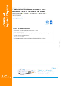| Citer en APA 7: | Salimitorkamani, M., Baladi, E., Mehranpour, M., & Odabasi, H. (2025). A reflective broadband metasurface-based cross-polarization converter (CPC) for Ku and K bands. Journal of Applied Physics, 137(23), 233104 (9 pages). https://doi.org/10.1063/5.0251865 |