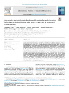 | Citer en APA 7: | Singh, A., Nawayseh, N., Doyon-Poulin, P., Milosavljevic, S., Dewangan, K. N., Kumar, Y., & Samuel, S. (2025). Comparative analysis of classical and ensemble models for predicting whole body vibration induced lumbar spine stress. A case study of agricultural tractor operators. International Journal of Industrial Ergonomics, 108, 103775 (12 pages). https://doi.org/10.1016/j.ergon.2025.103775 |