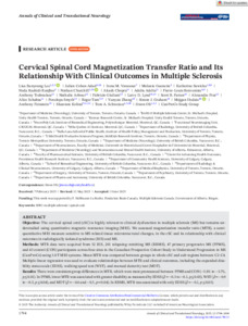 | Citer en APA 7: | Eunyoung Lee, L., Cohen-Adad, J., Vavasour, I. M., Guenette, M., Sawicka, K., Rashidi-Ranjbar, N., Churchill, N. W., Chopra, A., Adelia, A., Benveniste, P.-L., Traboulsee, A., Arbour, N., Giuliani, F., Lynd, L. D., Patten, S. B., Prat, A., Schabas, A., Smyth, P., Tam, R., ... Oh, J. (2025). Cervical spinal cord magnetization transfer ratio and its relationship with clinical outcomes in multiple sclerosis. Annals of Clinical and Translational Neurology, 12(9), 1794-1804. https://doi.org/10.1002/acn3.70113 |