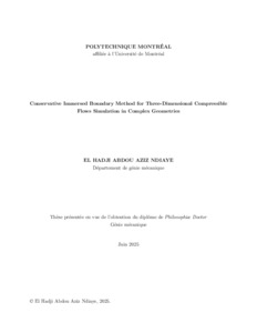 | Citer en APA 7: | Ndiaye, E. H. A. A. (2025). Conservative Immersed Boundary Method for Three-Dimensional Compressible Flows Simulation in Complex Geometries [Thèse de doctorat, Polytechnique Montréal]. PolyPublie. https://publications.polymtl.ca/66436/ |