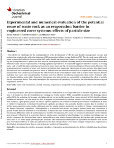 | Citer en APA 7: | Sylvain, K., Demers, I., & Pabst, T. (2025). Experimental and numerical evaluation of the potential reuse of waste rock as an evaporation barrier in engineered cover systems: effects of particle size. Canadian Geotechnical Journal, 62, 15 pages. https://doi.org/10.1139/cgj-2024-0534 |