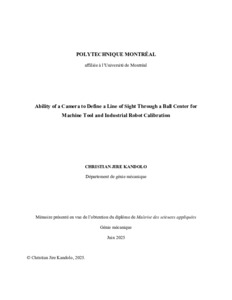 | Citer en APA 7: | Kandolo, C. J. (2025). Ability of a Camera to Define a Line of Sight Through a Ball Center for Machine Tool and Industrial Robot Calibration [Mémoire de maîtrise, Polytechnique Montréal]. PolyPublie. https://publications.polymtl.ca/66532/ |