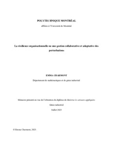 | Citer en APA 7: | Charmont, E. (2025). La résilience organisationnelle ou une gestion collaborative et adaptative des perturbations [Mémoire de maîtrise, Polytechnique Montréal]. PolyPublie. https://publications.polymtl.ca/66541/ |