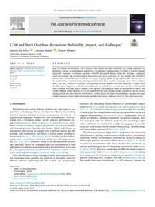 | Citer en APA 7: | Da Silva, L. M. P., Samhi, J., & Khomh, F. (2025). LLMs and Stack Overflow discussions: reliability, impact, and challenges. Journal of Systems and Software, 230, 112541 (21 pages). https://doi.org/10.1016/j.jss.2025.112541 |
