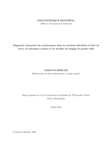 | Citer en APA 7: | Ekhlasi, M. (2025). Diagnostic automatisé des performances dans les systèmes distribués à l'aide de traces, de métriques système et de modèles de langage de grande taille [Thèse de doctorat, Polytechnique Montréal]. PolyPublie. https://publications.polymtl.ca/67029/ |