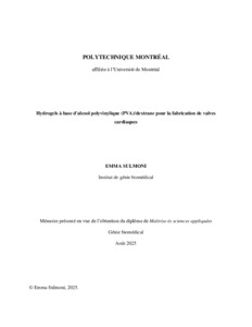 | Citer en APA 7: | Sulmoni, E. (2025). Hydrogels à base d'alcool polyvinylique (PVA)/dextrane pour la fabrication de valves cardiaques [Mémoire de maîtrise, Polytechnique Montréal]. PolyPublie. https://publications.polymtl.ca/67684/ |