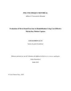 | Citer en APA 7: | Guay, L.-S. (2025). Evaluation of Sit-to-Stand Exercises in Rehabilitation Using a Cost-Effective Markerless Motion Capture [Mémoire de maîtrise, Polytechnique Montréal]. PolyPublie. https://publications.polymtl.ca/67711/ |