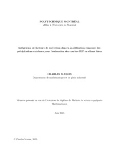 | Citer en APA 7: | Marois, C. (2025). Intégration de facteurs de correction dans la modélisation conjointe des précipitations extrêmes pour l'estimation des courbes IDF en climat futur [Mémoire de maîtrise, Polytechnique Montréal]. PolyPublie. https://publications.polymtl.ca/67714/ |
