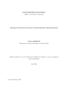 | Citer en APA 7: | Mehenni, G. (2025). Ontology-Constrained Generation of Domain-Specific Clinical Summaries [Mémoire de maîtrise, Polytechnique Montréal]. PolyPublie. https://publications.polymtl.ca/67792/ |