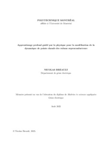 | Citer en APA 7: | Breault, N. (2025). Apprentissage profond guidé par la physique pour la modélisation de la dynamique de points chauds des rubans supraconducteurs [Mémoire de maîtrise, Polytechnique Montréal]. PolyPublie. https://publications.polymtl.ca/67860/ |