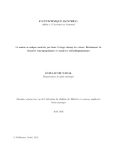 | Citer en APA 7: | Nadal, G. (2025). La sonde atomique assistée par laser à large champ de vision : traitement de données tomographiques et analyses cristallographiques [Mémoire de maîtrise, Polytechnique Montréal]. PolyPublie. https://publications.polymtl.ca/67872/ |