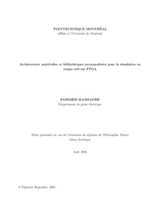 | Citer en APA 7: | Hajizadeh, F. (2025). Architectures matérielles et bibliothèques personnalisées pour la simulation en temps réel sur FPGA [Thèse de doctorat, Polytechnique Montréal]. PolyPublie. https://publications.polymtl.ca/68126/ |