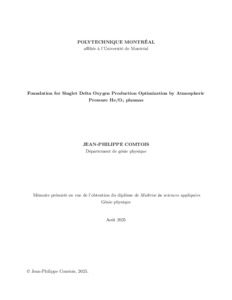 | Citer en APA 7: | Comtois, J.-P. (2025). Foundation for Singlet Delta Oxygen Production Optimization by Atmospheric Pressure He/O2 Plasmas [Mémoire de maîtrise, Polytechnique Montréal]. PolyPublie. https://publications.polymtl.ca/68140/ |