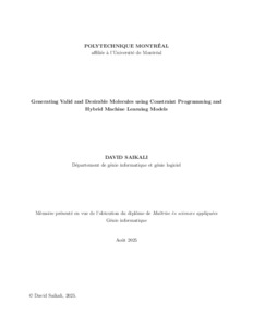 | Citer en APA 7: | Saikali, D. (2025). Generating Valid and Desirable Molecules using Constraint Programming and Hybrid Machine Learning Models [Mémoire de maîtrise, Polytechnique Montréal]. PolyPublie. https://publications.polymtl.ca/68141/ |