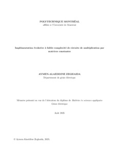 | Citer en APA 7: | Zeghaida, A.-A. (2025). Implémentation évolutive à faible complexité de circuits de multiplication par matrices constantes [Mémoire de maîtrise, Polytechnique Montréal]. PolyPublie. https://publications.polymtl.ca/68207/ |
