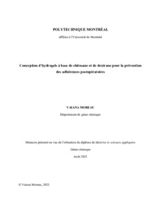 | Citer en APA 7: | Moreau, V. (2025). Conception d'hydrogels à base de chitosane et de dextrane pour la prévention des adhérences postopératoires [Mémoire de maîtrise, Polytechnique Montréal]. PolyPublie. https://publications.polymtl.ca/68443/ |