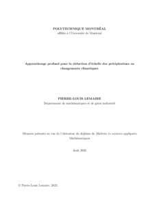| Citer en APA 7: | Lemaire, P.-L. (2025). Apprentissage profond pour la réduction d'échelle des précipitations en changements climatiques [Mémoire de maîtrise, Polytechnique Montréal]. PolyPublie. https://publications.polymtl.ca/68482/ |