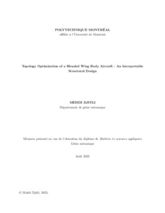 | Citer en APA 7: | Djitli, M. (2025). Topology Optimization of a Blended Wing Body Aircraft : An Interpretable Structural Design [Mémoire de maîtrise, Polytechnique Montréal]. PolyPublie. https://publications.polymtl.ca/68485/ |