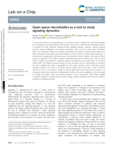 | Citer en APA 7: | Proulx, M., Clapperton Richard, P., Piekny, A., Potvin-Trottier, L., & Gervais, T. (2025). Open-Space Microfluidics as a Tool to Study Signaling Dynamics. Lab on a Chip (25), 5592-5605. https://doi.org/10.1039/d5lc00521c |