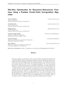 | Citer en APA 7: | Farzin, A. A., Pun, Y.-M., Lesage-Landry, A., Diouane, Y., & Shames, I. (2025). Min-max optimisation for nonconvex-nonconcave functions using a random zeroth-order extragradient algorithm. Transactions on Machine Learning Research, 59 pages. https://openreview.net/forum?id=1bxY1uAXyr |