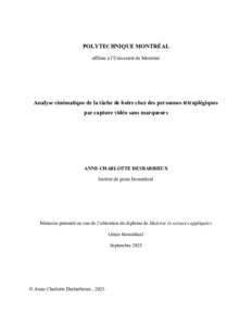 | Citer en APA 7: | Desbarbieux, A.-C. (2025). Analyse cinématique de la tâche de boire chez des personnes tétraplégiques par capture vidéo sans marqueurs [Mémoire de maîtrise, Polytechnique Montréal]. PolyPublie. https://publications.polymtl.ca/69270/ |