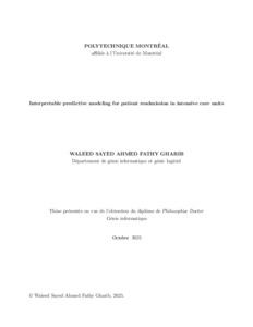 | Citer en APA 7: | Gharib, W. S. A. F. (2025). Interpretable Predictive Modeling for Patient Readmission in Intensive Care Units [Thèse de doctorat, Polytechnique Montréal]. PolyPublie. https://publications.polymtl.ca/70097/ |