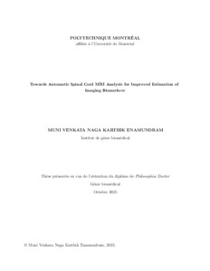 | Citer en APA 7: | Enamundram, M. V. N. K. (2025). Towards Automatic Spinal Cord MRI Analysis for Improved Estimation of Imaging Biomarkers [Thèse de doctorat, Polytechnique Montréal]. PolyPublie. https://publications.polymtl.ca/70362/ |