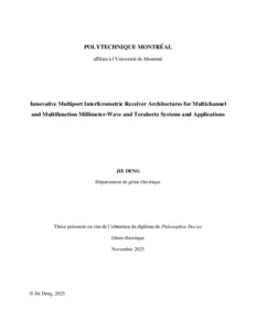 | Citer en APA 7: | Deng, J. (2025). Innovative Multiport Interferometric Receiver Architectures for Multichannel and Multifunction Millimeter-Wave and Terahertz Systems and Application [Thèse de doctorat, Polytechnique Montréal]. PolyPublie. https://publications.polymtl.ca/70595/ |