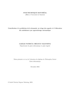 | Citer en APA 7: | Talotsing, G. P. M. (2025). Contribution à la prédiction de la demande, au triage des appels et à l'allocation des ambulances par apprentissage automatique [Thèse de doctorat, Polytechnique Montréal]. PolyPublie. https://publications.polymtl.ca/71223/ |