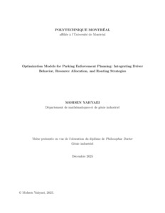 | Citer en APA 7: | Yahyaei, M. (2025). Optimization Models for Parking Enforcement Planning: Integrating Driver Behavior, Resource Allocation, and Routing Strategies [Thèse de doctorat, Polytechnique Montréal]. PolyPublie. https://publications.polymtl.ca/71314/ |