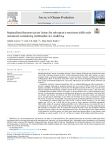 | Citer en APA 7: | Louvet, J., Quik, J. T. K., & Boulay, A.-M. (2025). Regionalized characterization factors for microplastic emissions in life cycle assessment considering multimedia fate modelling. Journal of Cleaner Production, 538, 147217 (15 pages). https://doi.org/10.1016/j.jclepro.2025.147217 |