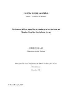 | Citer en APA 7: | Kordjazi, S. (2025). Development of Electrospun Mat for Antibacterial and Antiviral Air Filtration Mask Based on Cellulose Acetate [Thèse de doctorat, Polytechnique Montréal]. PolyPublie. https://publications.polymtl.ca/71458/ |
