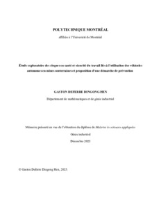 | Citer en APA 7: | Dingong Hen, G. D. (2025). Étude exploratoire des risques en santé et sécurité du travail liés à l'utilisation des véhicules autonomes en mines souterraines et proposition d'une démarche de prévention [Mémoire de maîtrise, Polytechnique Montréal]. PolyPublie. https://publications.polymtl.ca/71473/ |