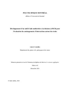 | Citer en APA 7: | Saliba, S. (2025). Développement d'un outil d'aide multicritère à la décision (AMCD) pour l'évaluation des aménagements d'intersections autour des écoles [Mémoire de maîtrise, Polytechnique Montréal]. PolyPublie. https://publications.polymtl.ca/71707/ |