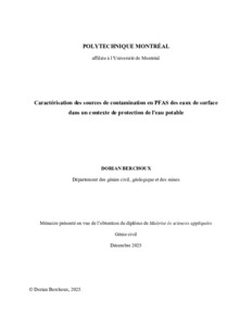 | Citer en APA 7: | Berchoux, D. (2025). Caractérisation des sources de contamination en PFAS des eaux de surface dans un contexte de protection de l'eau potable [Mémoire de maîtrise, Polytechnique Montréal]. PolyPublie. https://publications.polymtl.ca/71719/ |