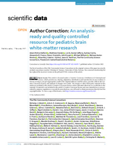 | Citer en APA 7: | Richie-Halford, A., Cieslak, M., Ai, L., Caffarra, S., Covitz, S., Franco, A. R., Karipidis, I. I., Kruper, J., Milham, M., Avelar-Pereira, B., Roy, E., Sydnor, V. J., Yeatman, J. D., Abbott, N. J., Anderson, J. A. E., Gagana, B., Bleile, M.L., Bloomfield, P. S., Bottom, V., ... Rokem, A. (2022). Author Correction: An analysis-ready and quality controlled resource for pediatric brain white-matter research. Scientific Data, 9(1), 2 pages. https://doi.org/10.1038/s41597-022-01816-2 |