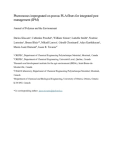 | Citer en APA 7: | Klassen, D., Pouchet, C., Simon, W., Smith, I., Lemoine, N., Blais, B., Larose, M., Chouinard, G., Karthikeyan, A., Dumont, M.-J., & Tavares, J. R. (2026). Pheromones impregnated on porous PLA fibers for integrated pest management. Journal of Polymers and the Environment, 34(5), 99 (16 pages). https://doi.org/10.1007/s10924-026-03827-1 |
